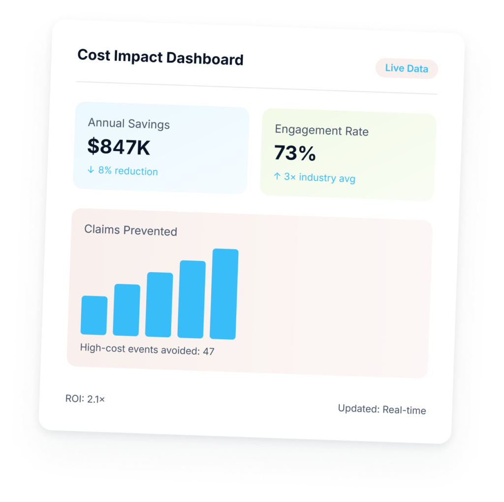 Gamified challenges, rewards and nudges build real habits — delivering 3× industry engagement. Daily interactions keep wellness top of mind and drive